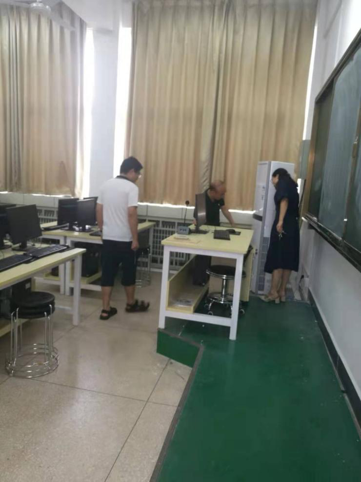 7月16日上午,经济管理学院安全领导小组组长张振江院长、副组长杨玉敬副院长、经济管理实验中心张跃超主任以及实验室管理员张黎娟一行就针对实验室暑期前的安全管理各方面进行了详细的检查。