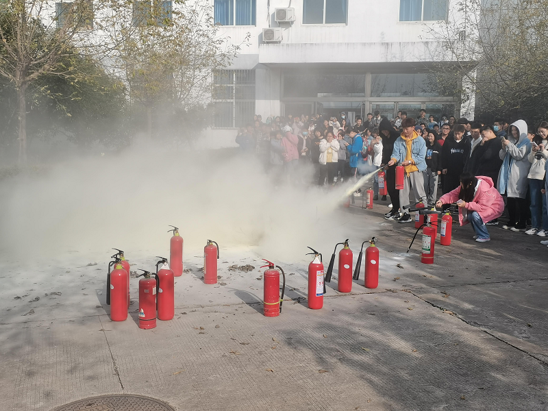 在活动期间平顶山学院各个实验室对安全问题进行了消防演习,让学生熟悉灭火器、懂得如何使用灭火器,在出现火情时可以正确的及时的使用灭火器灭火;在重大火情时懂得及时拨打火警“119”电话,能迅速的准确的说出火灾位置、火灾情况和报警人员信息。