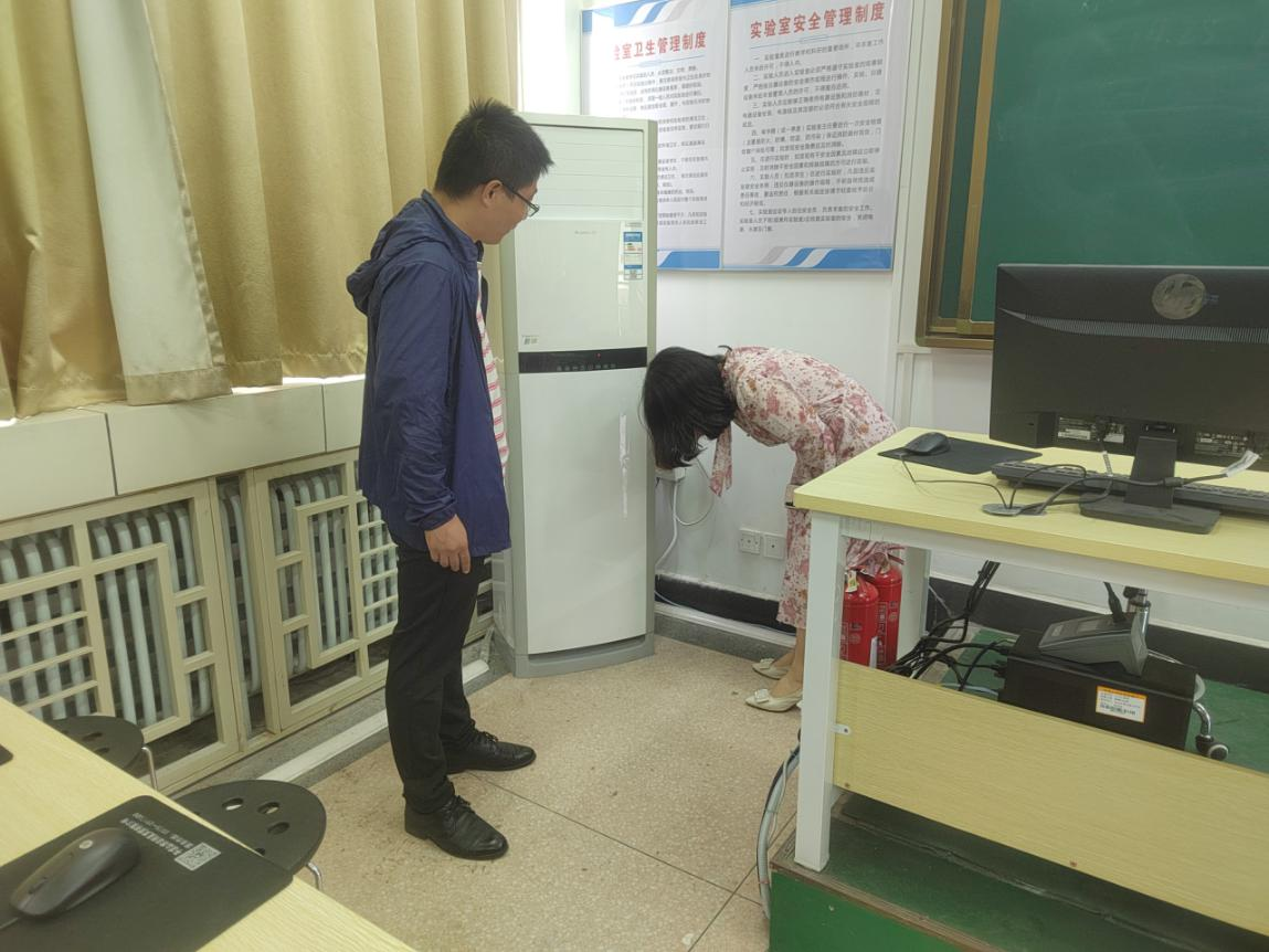 2022年7月5日,经济管理学院副院长杨玉敬、实验中心主任张跃超、实验室管理员满曙瑜对我院实验室进行了全面安全检查,重点检查了实验室使用记录本填写情况、消防器材以及电路是否存在安全隐患。