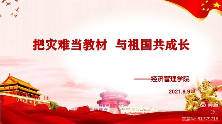 为深入学习习近平总书记“七一”重要讲话精神,深化党员对总书记重要讲话的理解,表彰暑期学生们积极投入抗洪救灾和疫情防控工作,提高学生党员的先锋模范意识。2021年9月9日,经济管理学院学生党支部通过线上视频会议的形式举行了以“把灾难当教材,与祖国共成长”为主题的主题党日活动。